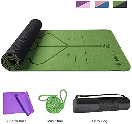 Dibikou Yoga Mat 1 4 Inch Tpe Yoga Mat Eco Friendly Alignment Lines Double Layers Non Slip Tear Resistant With Carry Bag And Resistance Bands 72 X24 X6mm New Amazon Co Uk Sports Outdoors